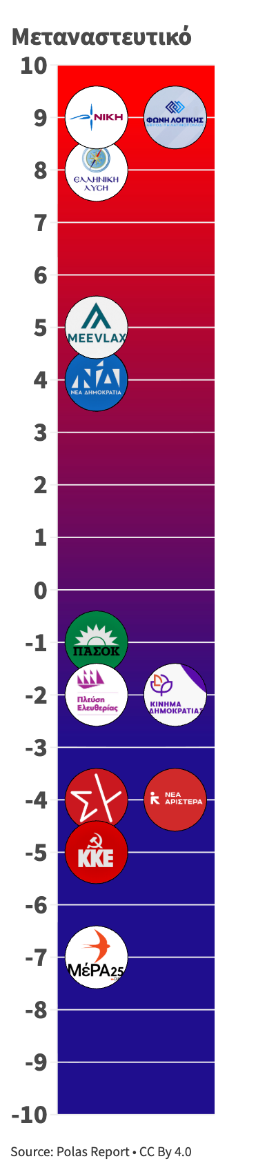 Από –10 (πλήρως ανοιχτά σύνορα) έως +10 (αυστηρός έλεγχος και εθνοκεντρική πολιτική). -