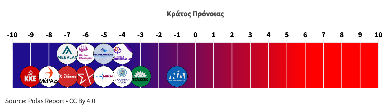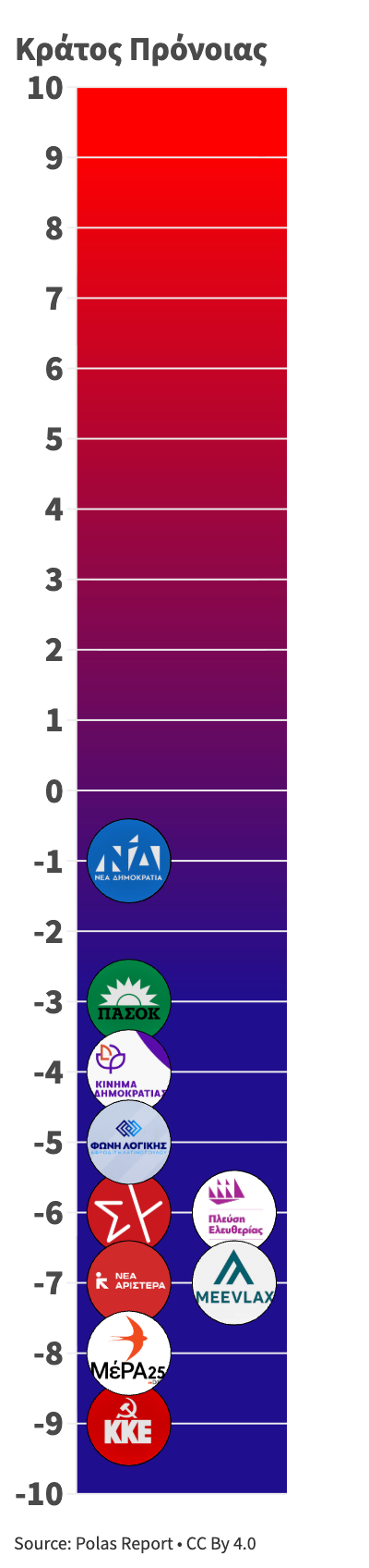 Από –10 (ελάχιστο κράτος πρόνοιας) έως +10 (ισχυρό, καθολικό κοινωνικό κράτος). -